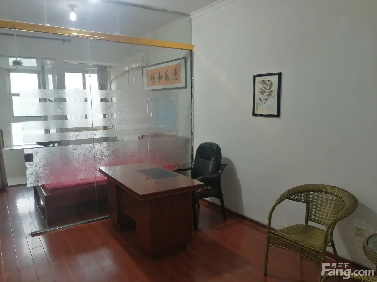 一室一厅之间玻璃隔断,小公司办公和居住都适合。干净卫生、安静,地铁、公交方便。
